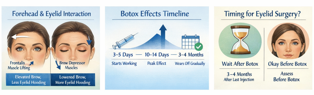 Interestingly, some surgeons deliberately use Botox before eyelid surgery to better understand eyelid function.