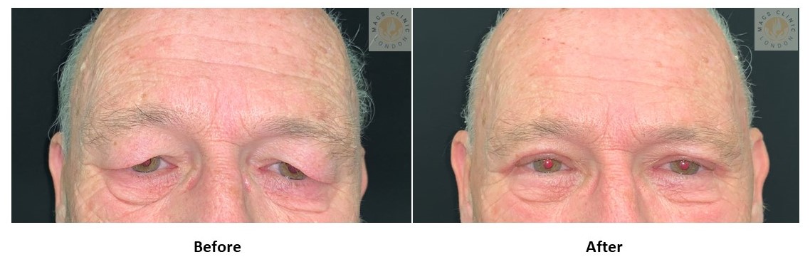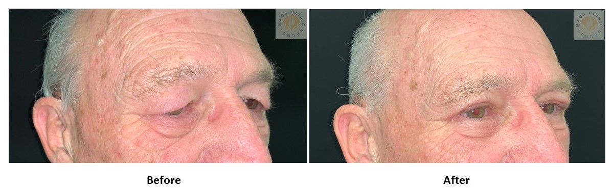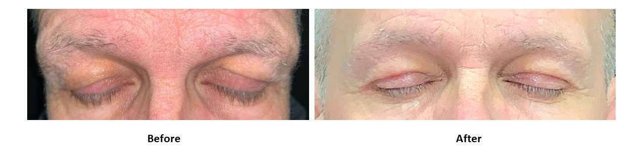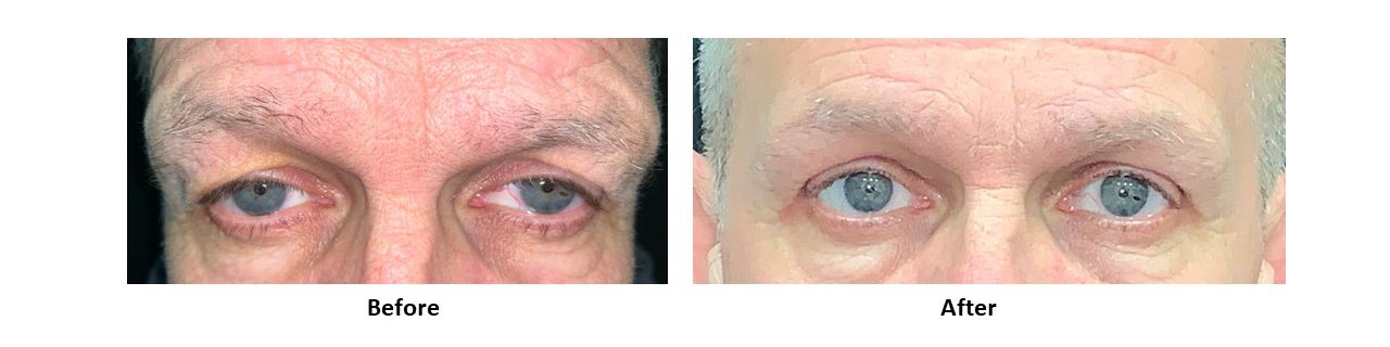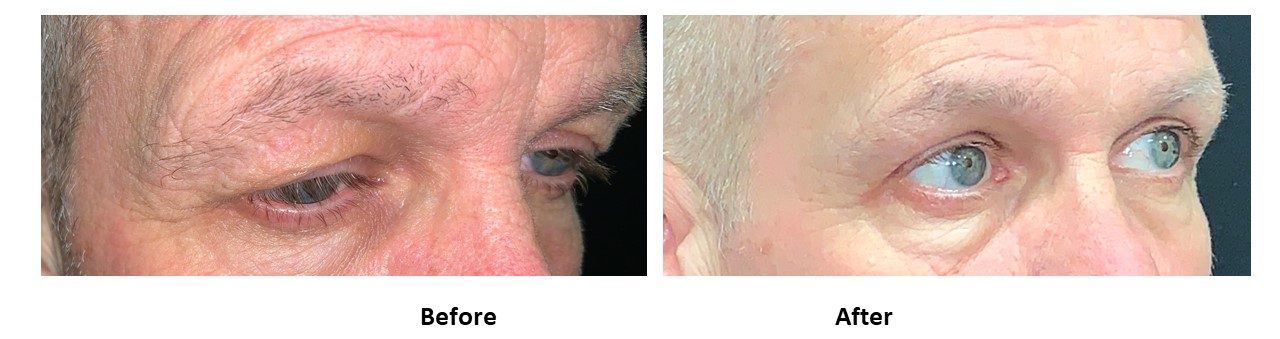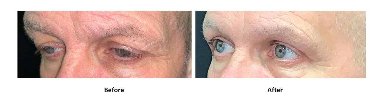 - brow droop may contribute to eyelid heaviness