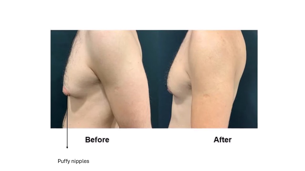 - Puffy nipple often resolves as fat is reduced