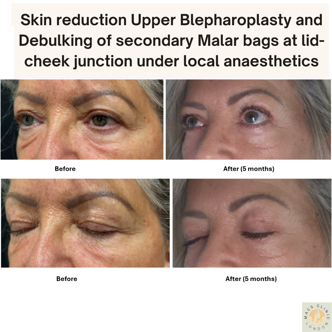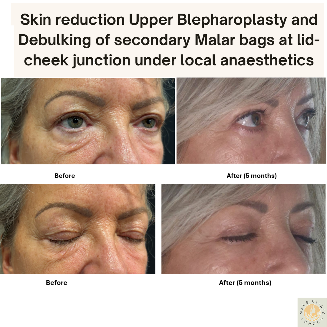 Mid-face lift and volumising procedures (fillers or fat transfer) may be added for comprehensive rejuvenation.
